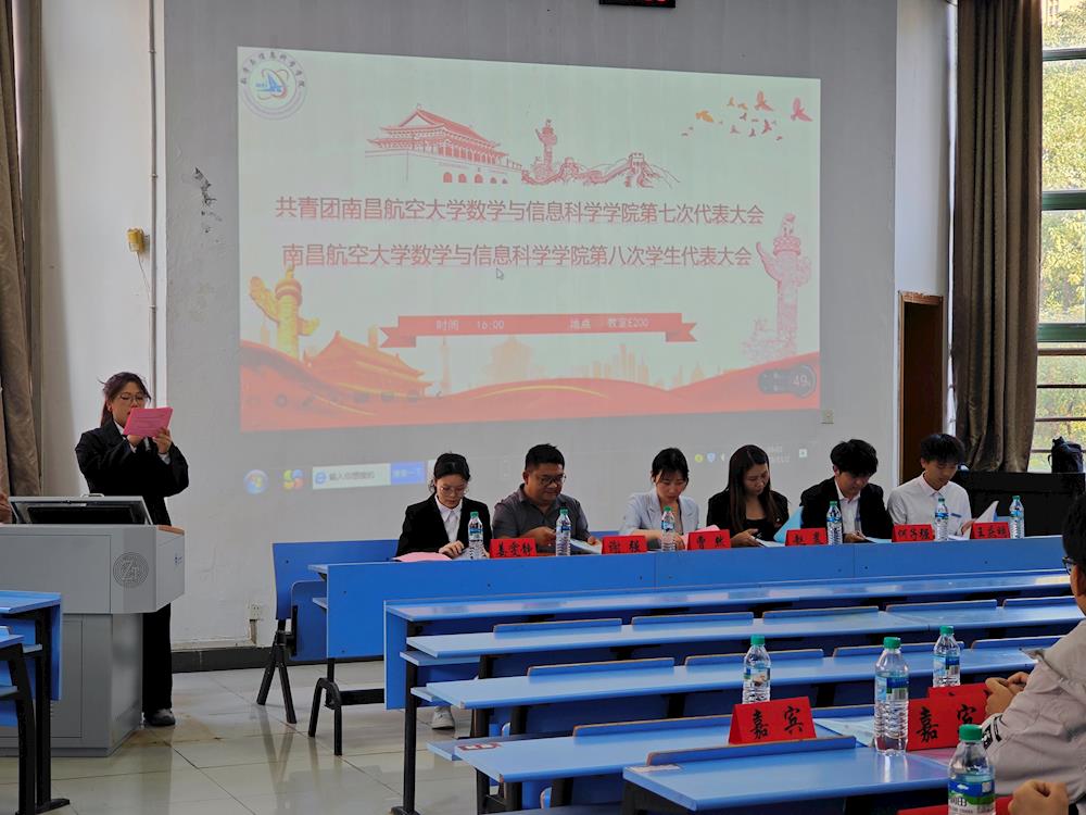 青春心向党,奋进新时代。在全校上下深入学习贯彻习近平总书记考察江西重要讲话精神之际,11月2日下午,共青团南昌航空大学数学与信息科学学院第七次代表大会暨南昌航空大学数学与信息科学学院第八次学生代表大会胜利召开。数学与信息科学学院党委副书记兼副院长曹然、校团委副书记兼学生会秘书长赵晨、校学生会主席王庆明出席,各学院团委、学生会负责人到会祝贺。