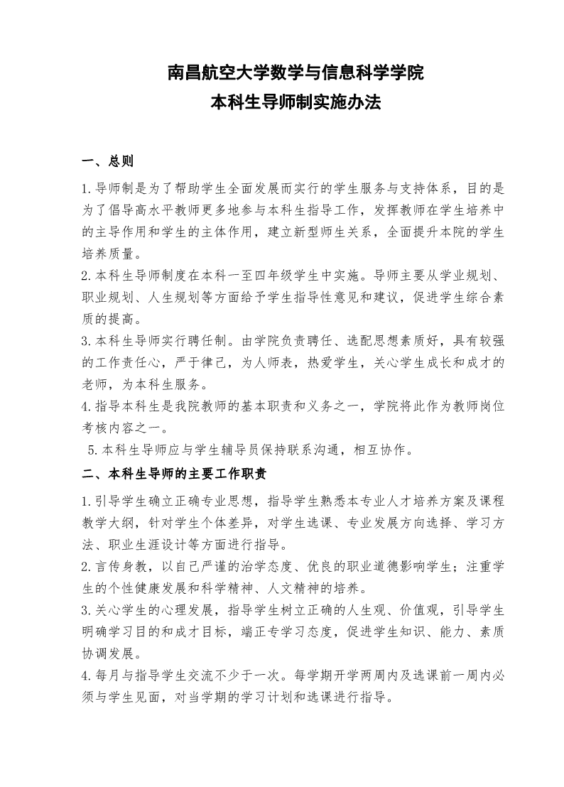 南昌航空大学数学与信息科学学院本科生导师制实施办法