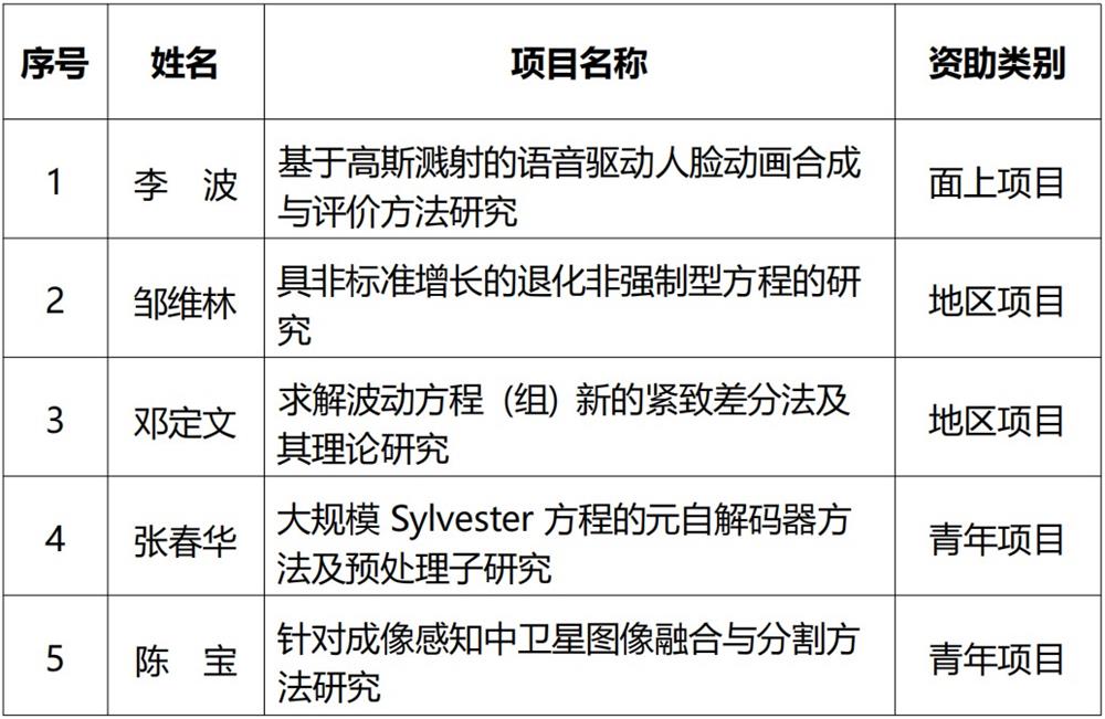 8月23日,国家自然科学基金委员会公布了2024年度国家自然科学基金项目的评审结果。我院李波、邹维林、邓定文、张春华、陈宝等5位教师的项目获得国家自然科学基金立项资助,其中,面上项目1项,地区科学基金项目2项,青年科学基金项目2项,资助经费共计164万元。