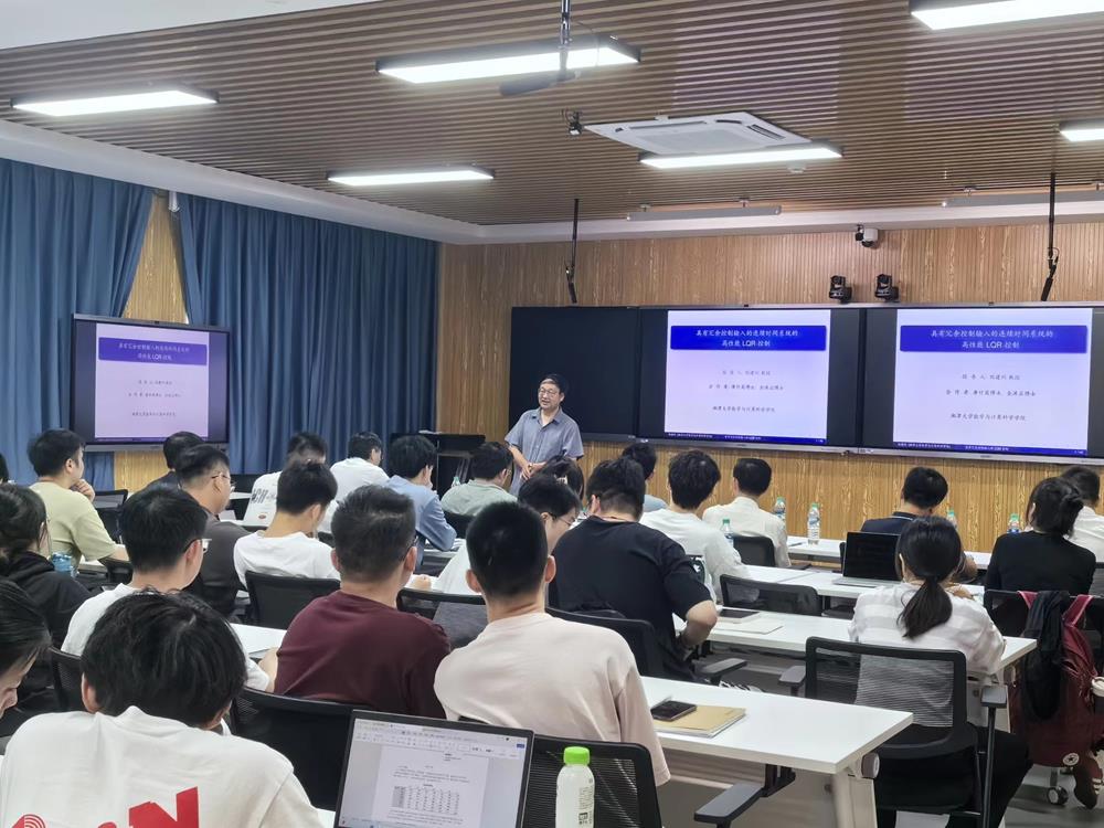 2024年5月29日上午在教学楼C栋101,湘潭大学数学与计算科学学院刘建州教授作了题为《具有冗余控制输入的连续时间系统的高性能LQR控制》的学术报告。报告由副校长汤华中教授主持,数学与信息科学学院的部分教师及研究生聆听了报告。