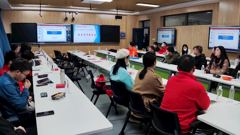 为庆祝建校70周年,丰富校庆系列活动,增强校友与母校的联系,数学与信息科学学院于11月19日下午在C201教室举办了庆祝建校70周年学术报告暨第3期数觿讲坛活动,学院校友、广东外语外贸大学数学与统计学院院长王军威教授应邀线上为我院师生做了题为《随机复杂网络的群体动力学》的学术报告。报告由院长李波主持,学院返校校友、专任教师以及部分学生聆听报告。