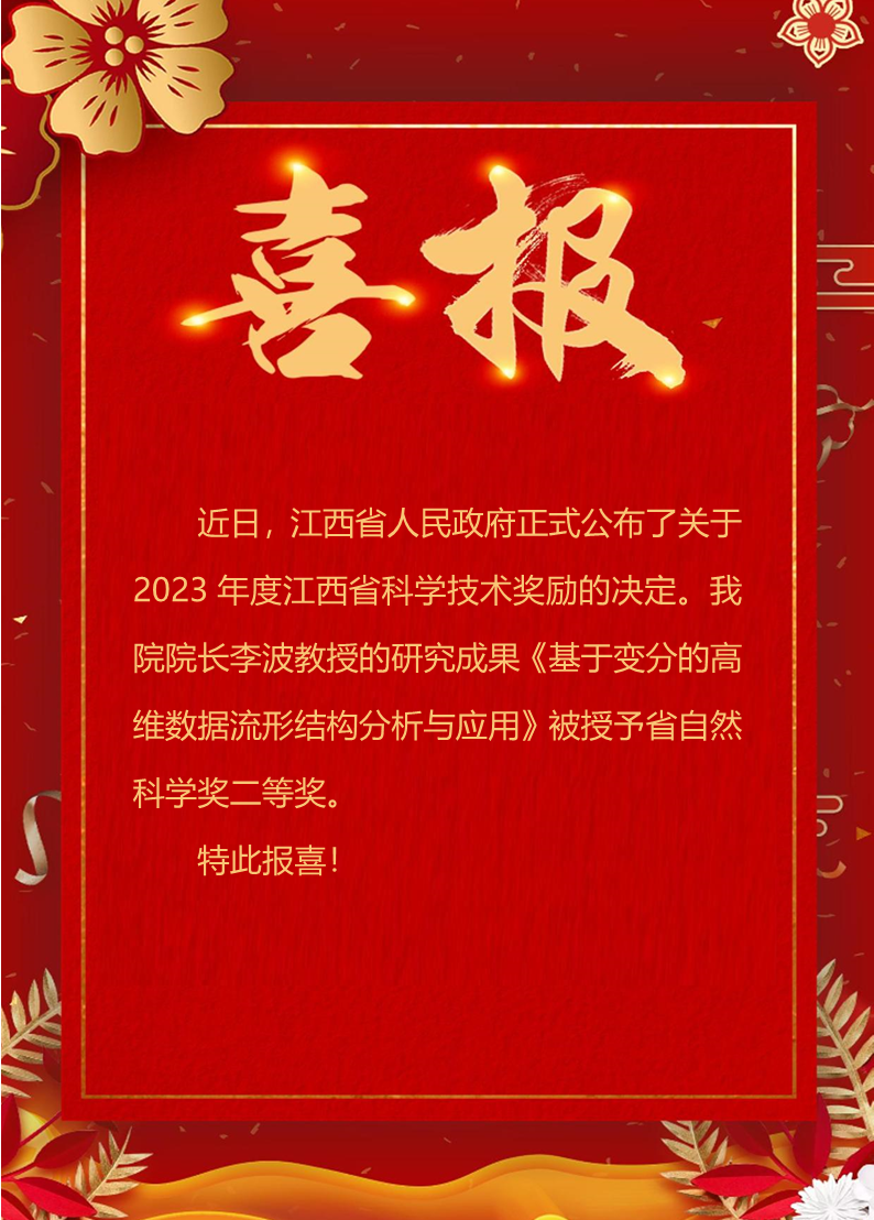 喜报!学院荣获江西省自然科学奖二等奖一项
